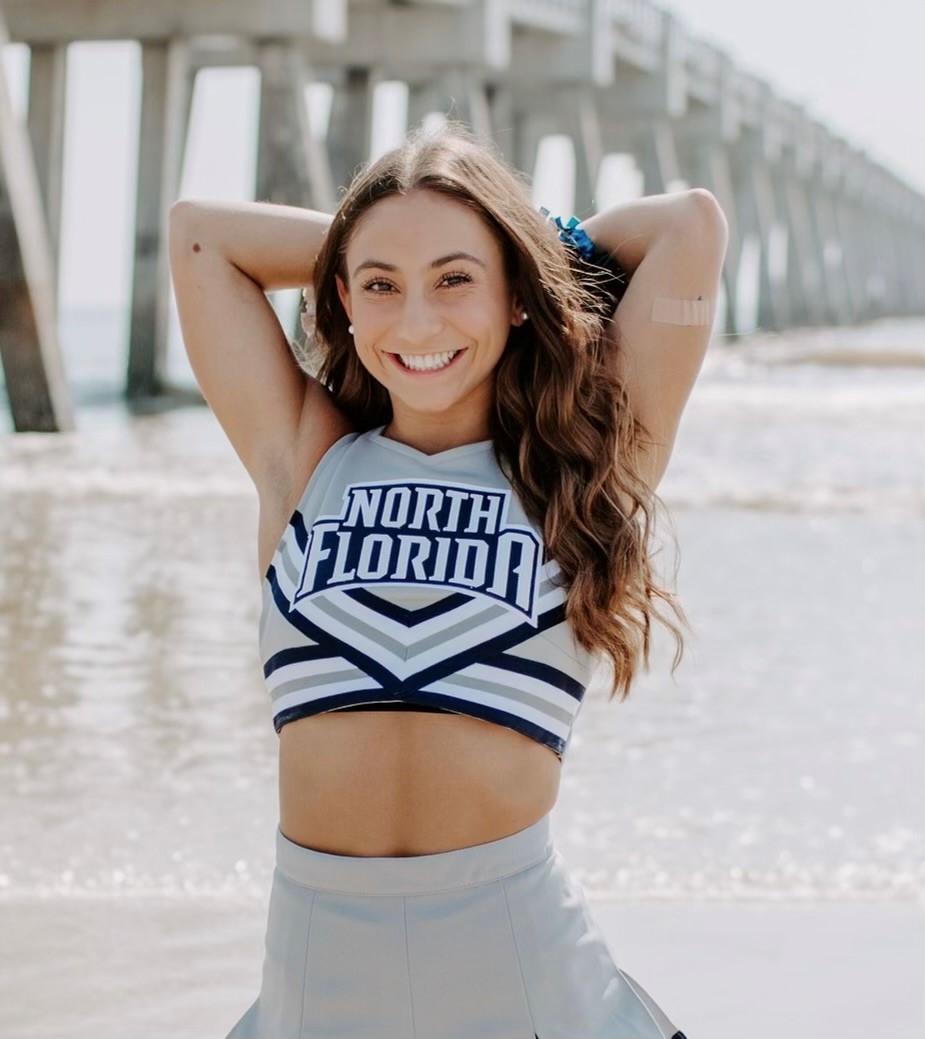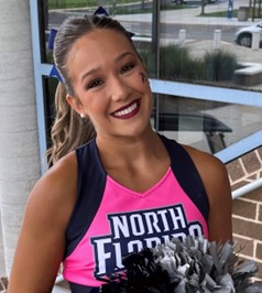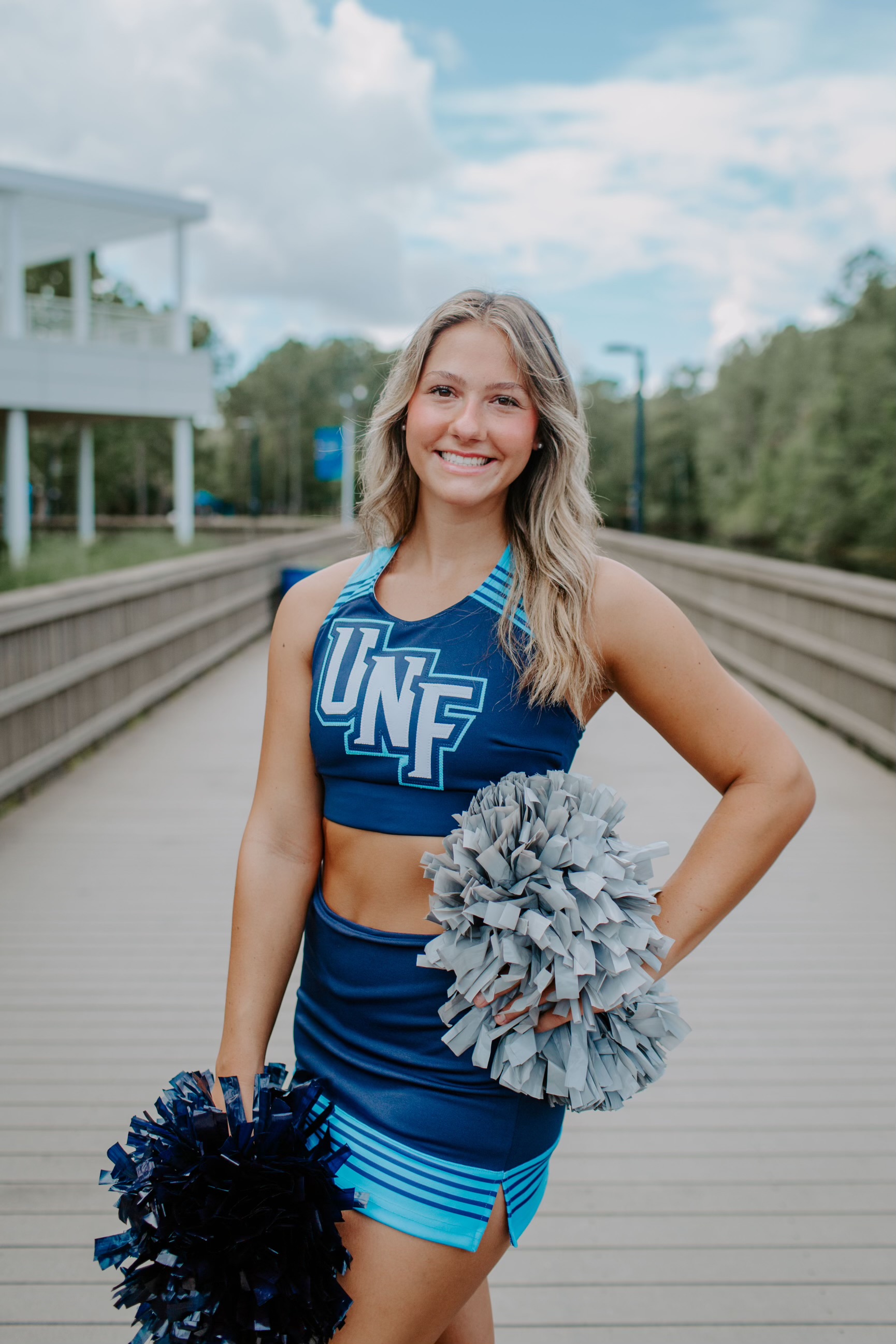 Abril Nolasco was born and raised in Jacksonville, Florida. She began doing cheerleading when she was 5 years old through the Baker County Touchdown Club. After that, she continued to follow her passion throughout middle school and into high school as well. Abril graduated from Baker County High School in 2022 and was part of both the varsity sideline and competition teams. She is currently a cheerleader at the University of North Florida where she is working towards obtaining her Bachelor’s Degree in Public Health and plans to pursue a Master’s Degree in Health Administration. Abril competed at NCA College Nationals earning 4th place, as well as FHSAA State earning 2nd place.